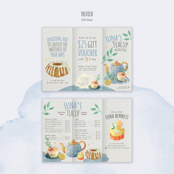 清新手繪風格下午茶宣傳折頁模板,手繪風格,下午茶,宣傳折頁,PSD